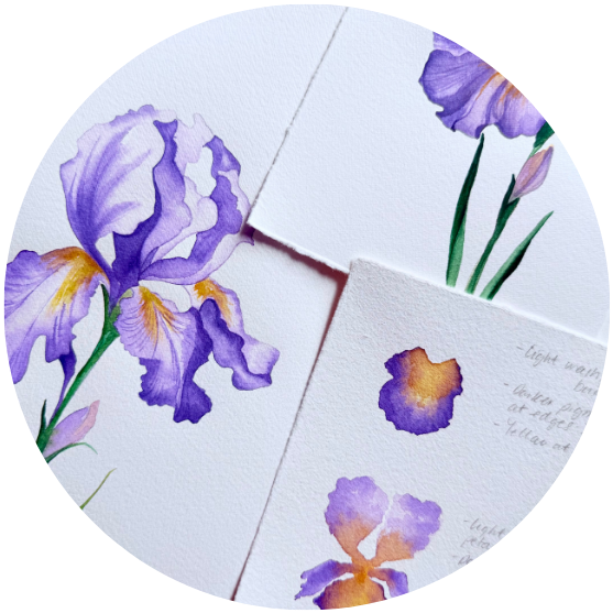 If you’re unsure about drawing, worry no more. Every module includes a PDF file with the sketch of the flower covered, so that you can focus entirely on painting, letting the sketches guide your brush and build your confidence.
